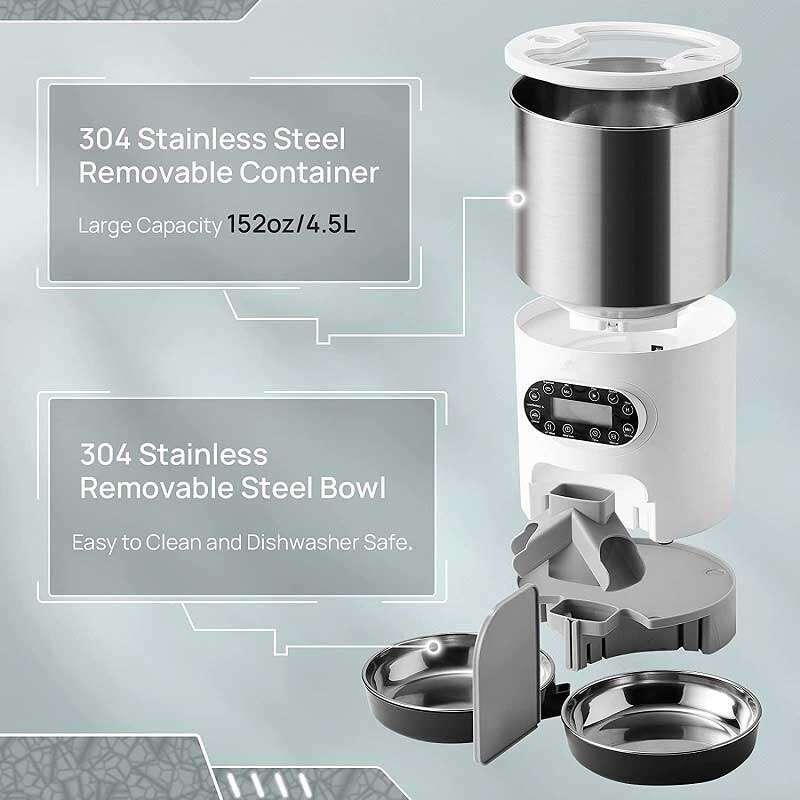 Automatic feeding: Up to 4 meals per day, with a maximum of 20 servings per meal about 10g