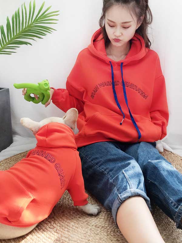 Manufacturers direct sales autumn and winter new cat pet hoodie teddy French cow hooded two feet dog plus cashmere parent-child clothing 06-0313