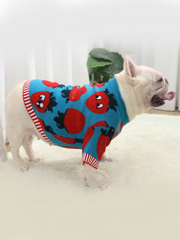 Products name: New autumn and winter dog clothes bulldog sweater strawberry cartoon short body fat dog method fighting autumn sweater 107-222041