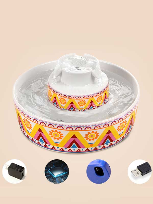 Factory direct Bohemian cake ceramics Pet Water dispenser cat dog feeder fountain 120-35019